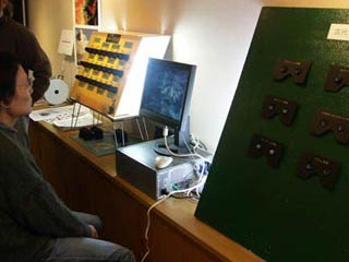 シャープの3D液晶ディスプレーによる、松原さんの展示です。